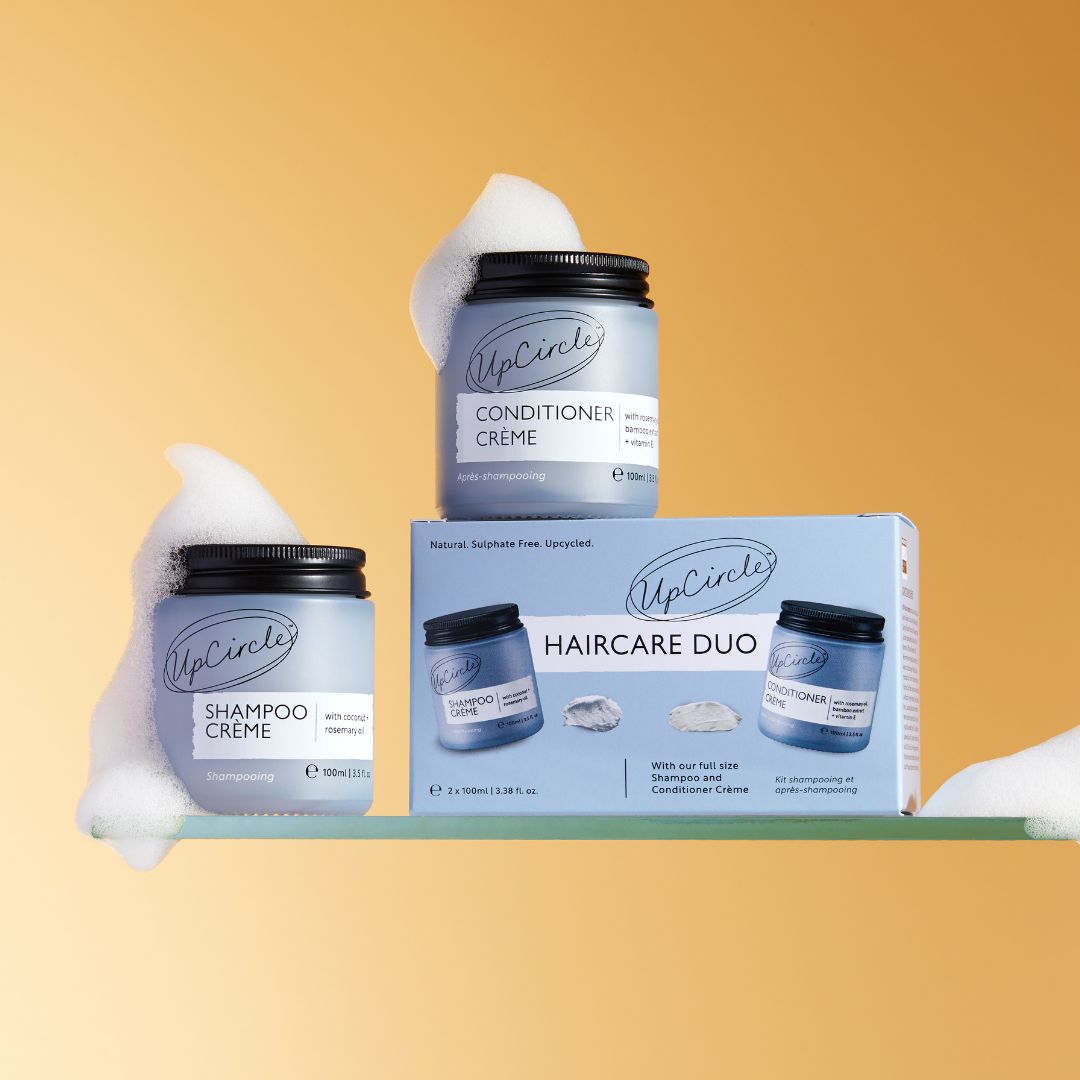 100% recyclable packaging in a glass bottle, jar or aluminium tube. Formulated without palm oil, parabens, phthalates, silicones, mineral oil and parfum. These products are natural, sustainable, vegan, cruelty-free and contain a repurposed ingredient.