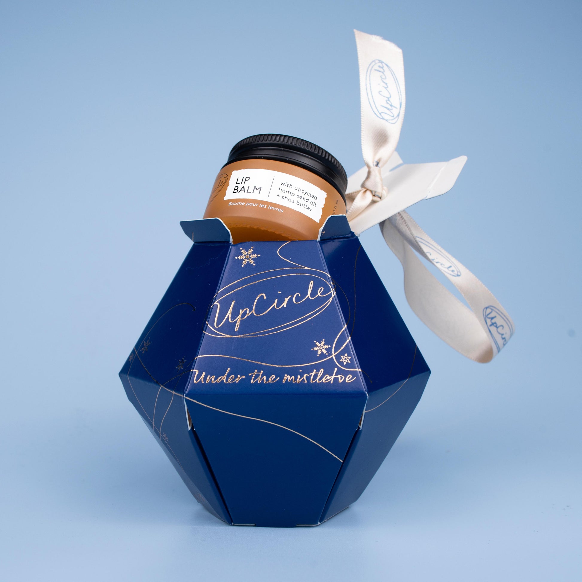As you open the bauble, you'll discover a nourishing lip balm made with upcycled hemp seed oil and shea butter that will keep lips soft, supple, and mistletoe-ready all winter long!