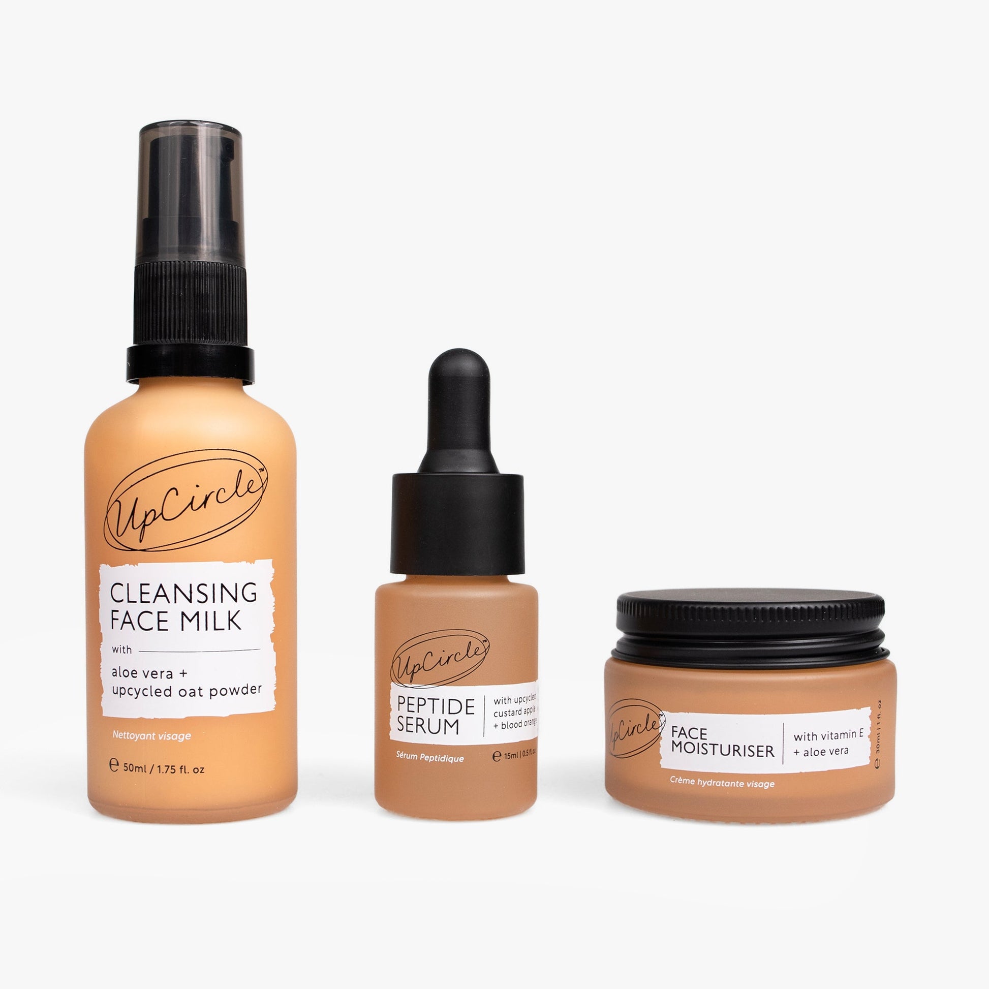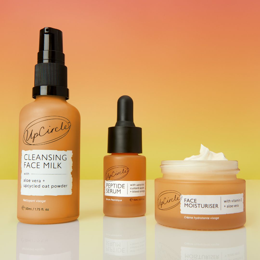 100% recyclable packaging in a glass bottle, jar or aluminium tube. Formulated without palm oil, parabens, phthalates, silicones, mineral oil and parfum. These products are natural, sustainable, vegan, cruelty-free and contain a repurposed ingredient.
